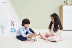 Leg med tesalon udvikler kommunikation, fantasi og samarbejde mellem børn. De farverige kager indbyder til sortering og tælling, mens kopper og skeer understøtter øje–hånd-koordination og finmotorik. Det elegante design i blide farver passer pænt ind på ethvert børneværelse.