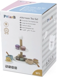 Trætesættet er ideelt til børns første sociale lege. Et to-etagers stativ med desserter, to tallerkener, to kopper og skeer skaber den perfekte scene til eftermiddagste eller festlig servering. Takket være den omhyggelige udførelse i robust træ er legetøjet behageligt at røre ved og sikkert for små hænder.