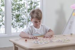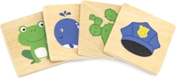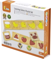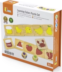 Et træbaseret læringsspil, hvor børn lærer at skelne mellem farver og matche dem korrekt med billeder. Børnene lærer ikke kun farverne at kende, men får også kendskab til genstande, planter eller dyr forbundet med disse farver, hvilket styrker deres viden om verden omkring dem.
