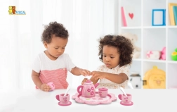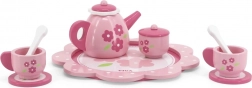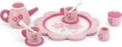 Børne te- og kaffesæt Viga er det ideelle legetøj for at fremme kreativitet og fantasi hos små børn. Dette sæt tilbyder tolv træelementer, som børnene kan bruge til at betjene deres yndlingsbamser og dukker.