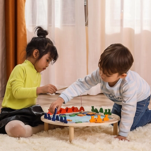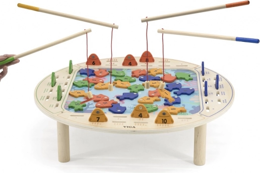 Træspillet Fiskeri efter fisk tilbyder mulighed for sjov og lærerig leg. Dette attraktive legerbord indeholder: