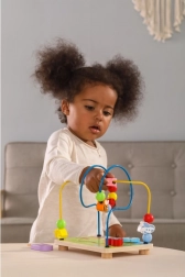 Oplev sjov med trælabyrinten - Gård, hvor farverige perler kan skubbes langs bøjede metaltråde. Børn vil elske dette legetøj takket være dets interaktive design, som stimulerer sanserne og understøtter kreativiteten.
