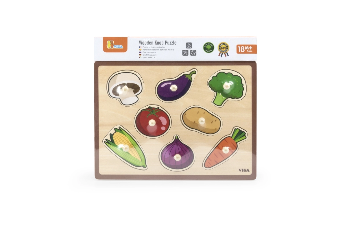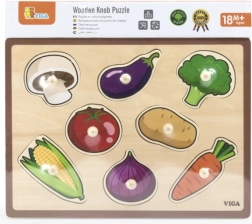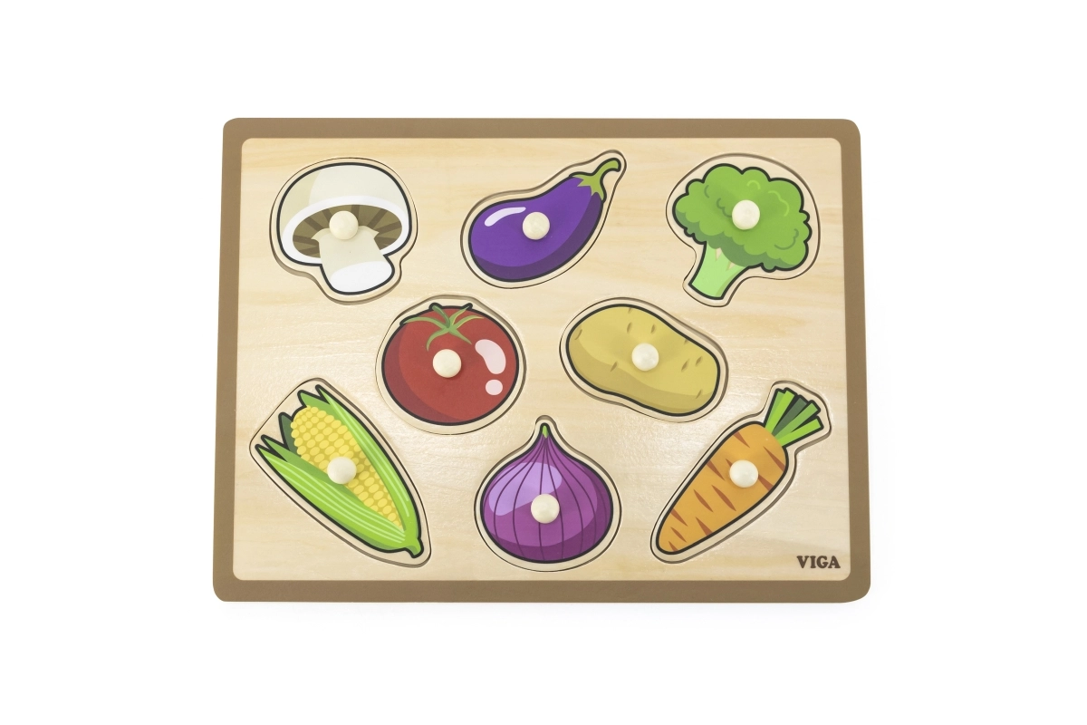 Træpuslespillet med grøntsager er et fremragende valg som den første læringslegetøj. Børn lærer på en sjov måde at genkende former, farver og forskellige typer grøntsager. Den robuste træplade med udskæringer og glatforarbejdede brikker er tilpasset små børnehænder.