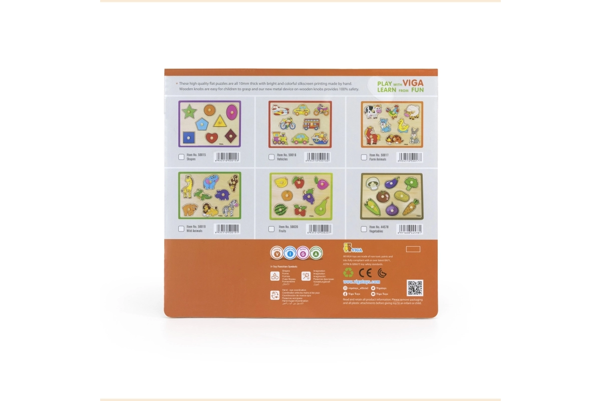 Opdag et legende og sikkert træpuslespil med grøntsager, der udvikler finmotorik, logik og genkendelse af former. Ideelt til små børn fra 18 måneder. Kvalitetstræ, farverige brikker og præcise udskæringer understøtter læring gennem leg.