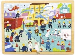 Dette kvalitets træpuslespil med et farverigt billede af brandmænd er perfekt til de første puslespilsoplevelser og til at udvikle børnehavebørns færdigheder. Brikkerne er solide, behagelige at holde om og samles i et stabilt træunderlag, som gør håndtering og opbevaring nemmere.