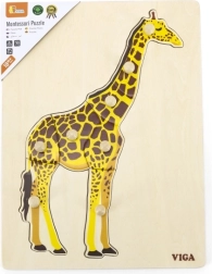 Dette træpuslespil med girafmotiv er et godt første puslespil for de mindste. Brikkerne har praktiske greb, der gør håndteringen let og støtter det korrekte greb og tålmodighed på en naturlig måde. Den høje kvalitet fra VIGA sikrer lang levetid og masser af legeglæde.