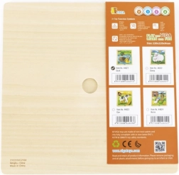 • Pakkens indhold: træplade (ramme) + 9 puslespilsbrikker.