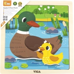 Sødt træpuslespil fra VIGA med motiv af ænder i en lille dam, som vil glæde små byggere. 9 brikker i en solid ramme styrker finmotorik, logisk tænkning og koncentration. Kvalitetsudførelse i træ med ikke‑giftige farver og glatte kanter er sikkert for børn både hjemme og i børnehave.