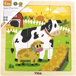 Træpuslespil 9 brikker - køer