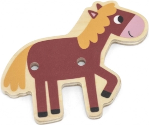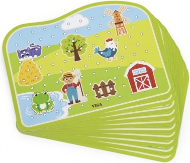 Dette snøresæt med gårdtema er et ideelt redskab til at udvikle færdigheder hos førskolebørn. Børn trækker snore gennem farvede træbrikker efter forlæg eller egen fantasi, hvilket styrker fingrene, forbedrer grebet og forbereder dem på at skrive og tegne.