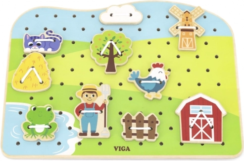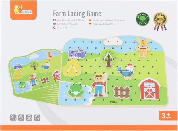 Opdag et sjovt og lærerigt spil for de mindste: et træsnøresæt med gårdmotiver fra VIGA. Når børnene trækker snorene gennem brikkerne, træner de finmotorik, præcision og hånd–øje-koordination. Den høje kvalitet i træ og giftfri farver sikrer sikker leg fuld af kreativitet og glæde.