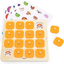Viga træ-hukommelsesspil kombinerer klassisk vendespil med høj kvalitet og attraktive illustrationer. Børn løfter dækslerne, afslører billederne og finder matchende par – en enkel mekanik, der træner visuel hukommelse, opmærksomhed og fokus. Takket være de udskiftelige kort kan motiverne nemt varieres, så spillet aldrig bliver kedeligt.