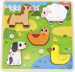 VIGA bruger kvalitetstræ og glatte overflader for sikker leg. De tykke brikker er nemme at holde om, så de er perfekte til små børnehænder. Puslespillet støtter selvstændighed, koncentration og kreativ leg.
