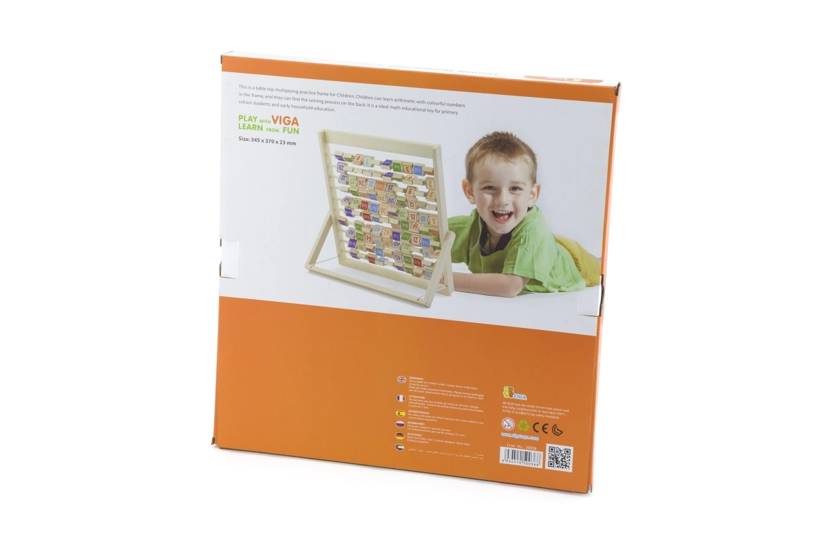 Denne kvalitets trætabel til multiplikation udvikler logisk tænkning, koncentration og finmotorik. Takket være den overskuelige opdeling og de farvede klodser forstår børn hurtigt principperne i multiplikation og kan når som helst tjekke dem ved at vende klodsen med det korrekte resultat.