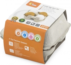 Sættet ligger i en solid papbakke, der ligner en rigtig æggebakke, så madlavningslegen bliver endnu mere autentisk. Takket være de kompakte mål er det let at rydde op og tage med.