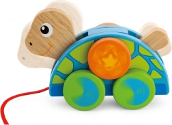 Den søde træskildpadde på snor støtter de første skridt og udviklingen af motorikken hos børn fra 18 måneder. Takket være de glatte hjul og den robuste snor er kørslen jævn og sjov. Sikkert træmateriale, livlige farver og kompakte mål gør den til det perfekte legetøj til daglig leg og som en smuk gave.