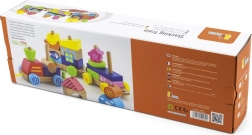 Robust forarbejdning, glatte kanter og sikre farver sikrer lang levetid og tryg leg. Sættet er ideelt som det første træbyggesæt for små togentusiaster.