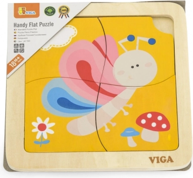 Dette søde træpuslespil med en farverig sommerfugl er et godt valg som introduktion til puslespil. De fire robuste brikker er nemme at holde for små hænder og lægges i en solid træbakke med forlæg. Én brik har en praktisk åbning for nem udtagning, så børn hurtigt lærer at håndtere brikkerne og lægge dem igen.