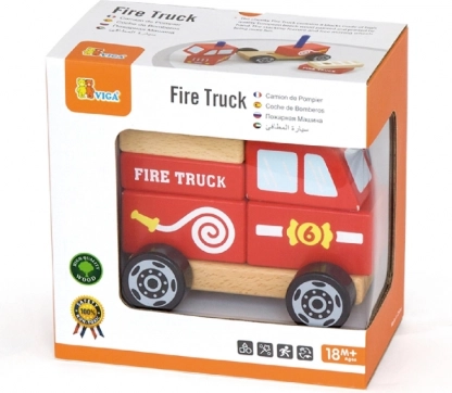 Byg din egen brandbil og kør ud på mission! Dette kvalitets træpuslespil fra VIGA kombinerer byggesæt, puslespil og kørende legebil. Det udvikler finmotorik, hånd-øje-koordination og fantasi hos børn fra 18 måneder.