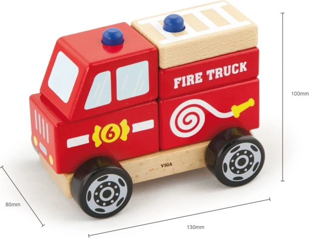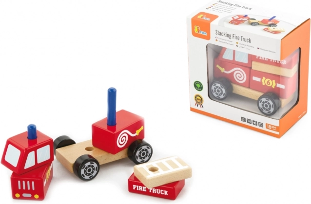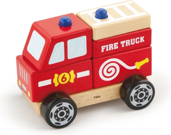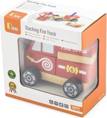 Træ-puslespil brandbil VIGA til børn fra 18 måneder. 3 i 1: byggesæt, puslespil og kørende legebil. Udvikler motorik og fantasi.