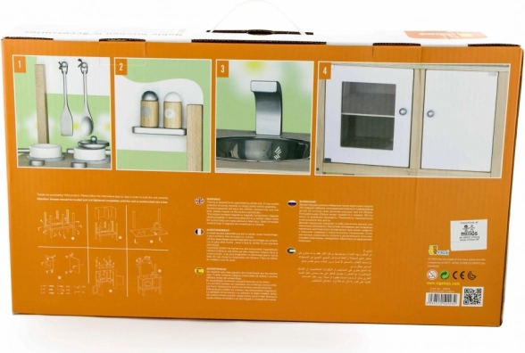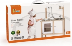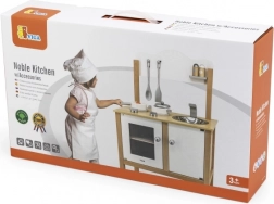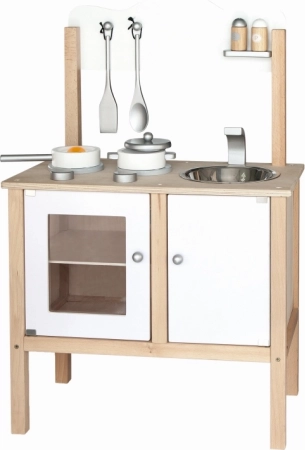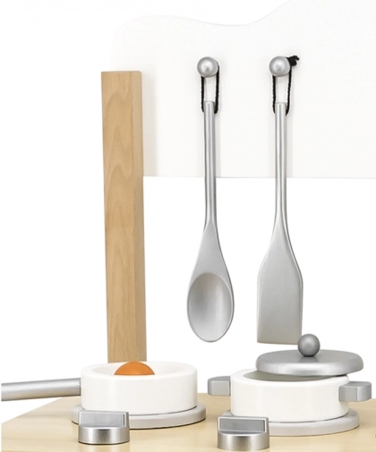 Vigas trælegetøjskøkken er ideelt til små kokke, der vil efterligne madlavning. Denne trækonstruktion i moderne hvid og naturtræ er både robust og stilfuld og passer ind i ethvert børneværelse.