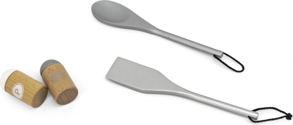 Køkkenet leveres med service og tilbehør, hvilket udvider mulighederne for leg.