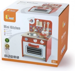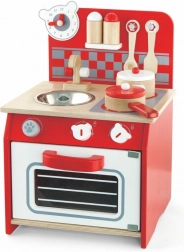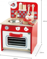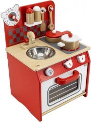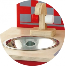 Takket være den høje kvalitet på trædesignet er dette køkken ikke kun holdbart, men også æstetisk tiltalende. Sættet inkluderer også legedownload, f.eks. skeer, øser, gryde med låg, pande med låg og to krydderikrukker.