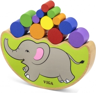 - Balancerende elefantbase, farvede træcylindre, farvet terning