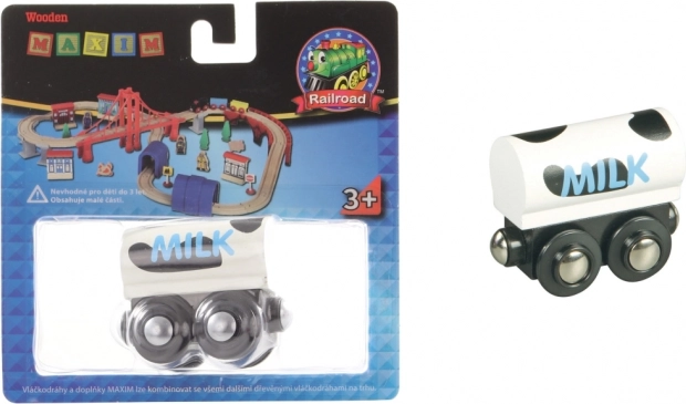 Udvid din togbane i træ med en praktisk mælkevogn fra Maxim. Børn får glæde af kreativ leg som landmænd og transportører, lærer grundlæggende logistik og træner finmotorik. En ideel tilføjelse til alle små tog-entusiaster fra 3 år.