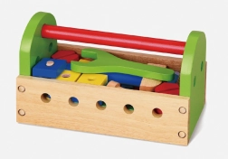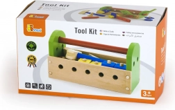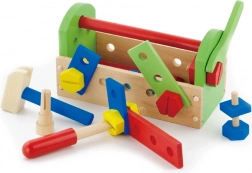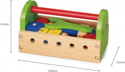 Dette kvalitetsværktøjssæt i træ i en robust transportkasse er ideelt til de første byggeforsøg. Børn træner finmotorik, logisk tænkning og øje–hånd-koordination ved at skrue, hamre og spænde. De farvede dele og realistiske værktøjer stimulerer kreativ og rolleleg.