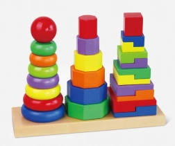 Træpuslespil-pyramide tilbyder sjov og læring for de mindste. Den er designet til at støtte barnets udvikling gennem: