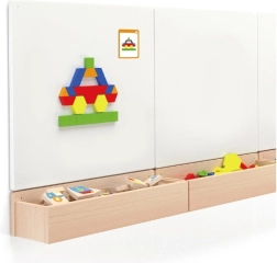 Geometriske blokke giver masser af sjov. Børn kan kopiere mønstre fra de medfølgende kort eller skabe deres egne kombinationer. Blokke kan sættes på en magnetisk tavle eller bruges på bordet. Dette produkt er designet til lærende leg, der stimulerer finmotorik og rumlig opfattelse.