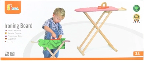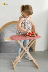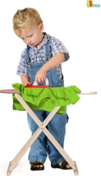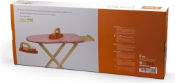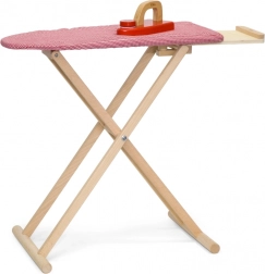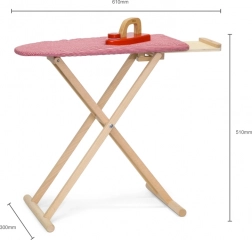 Sættet indeholder et sammenklappeligt bræt med aflægshylde og et træstrygejern med drejeknap for endnu mere sjov. Takket være de kompakte mål er det nemt at opbevare og passer i ethvert børneværelse.