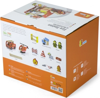 Denne detaljerede træ-brandstation giver børn et autentisk miljø til redningsmissioner. Med den røde station i flere niveauer, bil med stige og landingsplads til helikopter kan børn nemt skabe deres egne historier og træne koordination og logisk tænkning.