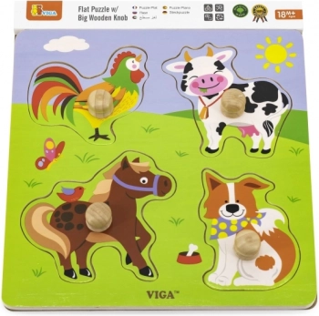 Opdag det første puslespil, der på en legende måde lærer børn at genkende former og bondegårdsdyr. Den solide træplade med farverige illustrationer og robuste brikker med greb er ideel til små hænder og daglig leg.