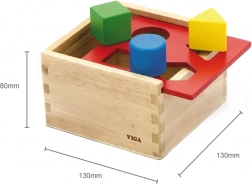 Opdag en sjov og lærerig legetøjsklassiker til de mindste – en træpuslekasse med forme i størrelsen ca. 13 × 13 × 8 cm. Understøtter genkendelse af former og farver, udvikler finmotorik og logisk tænkning. Ideel til børn fra 24 måneder.