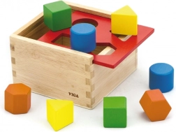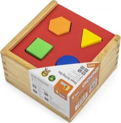 Børn lærer naturligt at skelne mellem former og farver ved at lægge de enkelte brikker i de matchende huller. Understøtter koordination og koncentration.