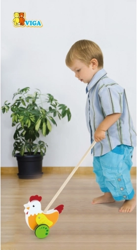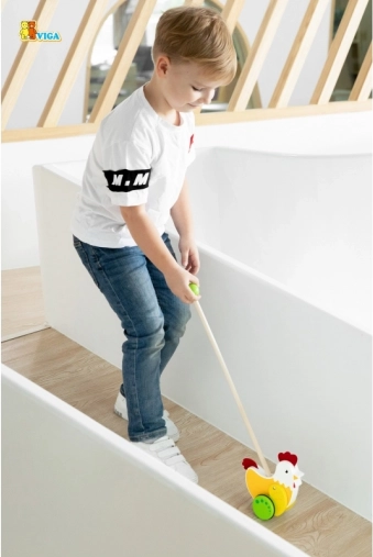 Denne rulle-gåvogn i form af en høne fra Viga er ideel til børn, der lærer at gå. Det farverige design fanger opmærksomheden og støtter udviklingen af koordination.