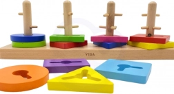 Vigas træ geometriske sorterings- og stablesæt giver børn sjov læring af nøglefærdigheder. Sættet består af fem pinde, hvor børnene placerer de tilhørende former; udfordringen er at matche formerne korrekt med de tilsvarende udskæringer. De klare farver tiltrækker og stimulerer de smås sanser.