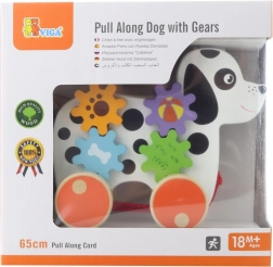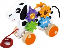 Denne træ-trækhund er designet til ikke kun at stimulere barnets fysiske aktivitet, men også dets kognitive færdigheder. Når hunden kører, drejer tandhjulene, hvilket skaber en interaktiv oplevelse for små opdagelsesrejsende.