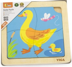 Viga træpuslespil indeholder fire tematiske brikker, som nemt samles på en billedplade. Hver brik er fremstillet af kvalitets træ og malet med sikre, ikke-giftige farver, som sikrer sikkerhed for både børn og miljø.