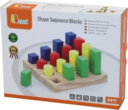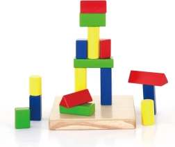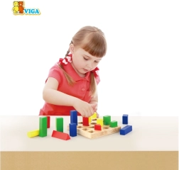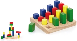 - træbase med pinde og sæt af farvede geometriske brikker