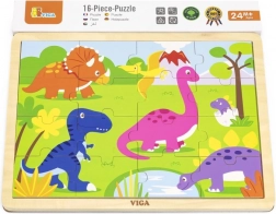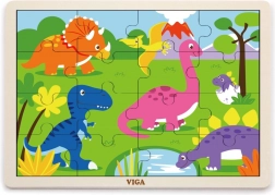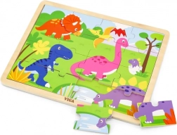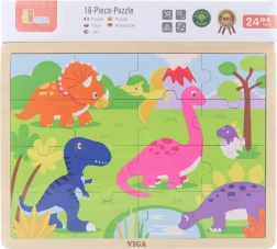 VIGA træpuslespil med dinosaurer, 16 brikker