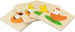 Fremstillet af holdbart træ med glat overflade og malet med sikre farver. Takket være klare illustrationer og robuste brikker er puslespillet ideelt til små hænder og daglig leg derhjemme og i børnehaven.