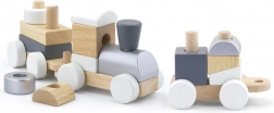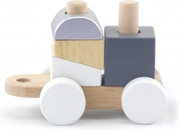 Toget består af aftagelige dele og rullende undervogne, så små byggere kan nyde både byggeri og kørsel. En oplagt gave, der både glæder og støtter barnets tidlige udvikling.