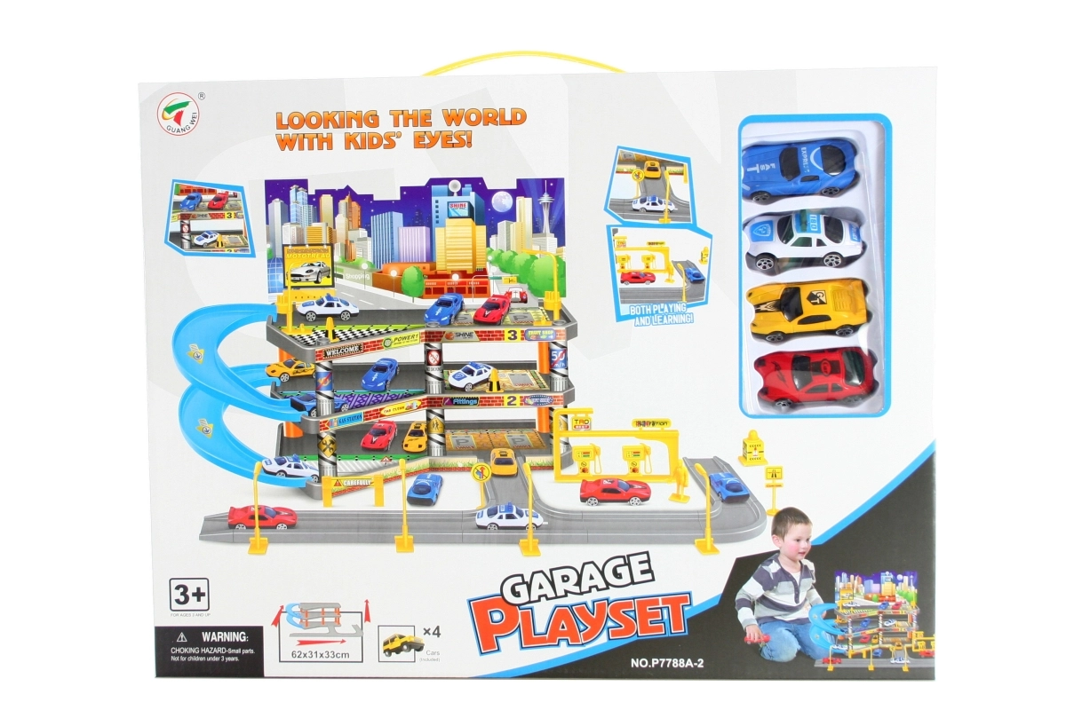 Dette tretages parkeringshus vil glæde små bilentusiaster. Takket være den stabile konstruktion og den gennemtænkte etageinddeling giver det timevis af underholdning og udvikler finmotorik, fantasi og koordineringsevner. I pakken finder du også 4 små biler, så der er ikke behov for at købe noget ekstra.