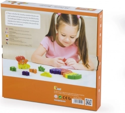 Hver puslespilsdel indeholder ét bogstav i alfabetet, hvilket hjælper børn med at genkende og lære bogstaver.