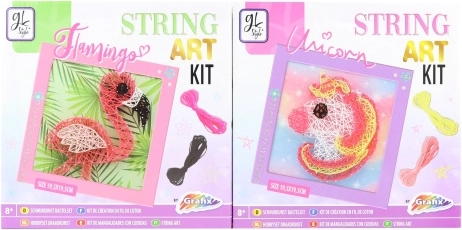 Dette kreative sæt giver dig mulighed for at kreere dine egne snorebilleder, som vil være en fantastisk dekoration til dit værelse. Pakken indeholder en skumplade, ramme, søm, 4 forskellige farver tråd og andre nødvendige tilbehør til at sammensætte billederne.