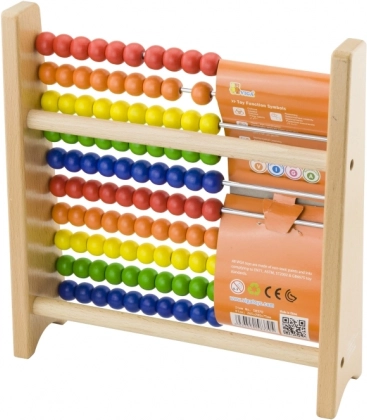 Denne kvalitets-træabacus er et ideelt redskab til de første skridt i matematik. Med de klare farver og letglidende perler lærer børn nemt at tælle til ti, enkel addition og subtraktion samt farvesortering.