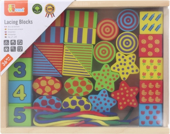 Oplev kreativ leg med VIGA træ-perlesættet – en æske fyldt med farverige former til at trække på snore som perler. Støtter finmotorik, hånd–øje-koordination og læring af farver og former. Dele i kvalitetstræ med ugiftige farver og stor størrelse for sikker håndtering.